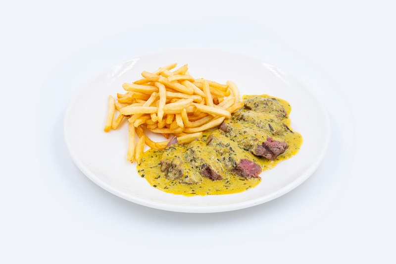 Dana bonfile dilimleri , Cafe de Paris sosu , patates kızartması
