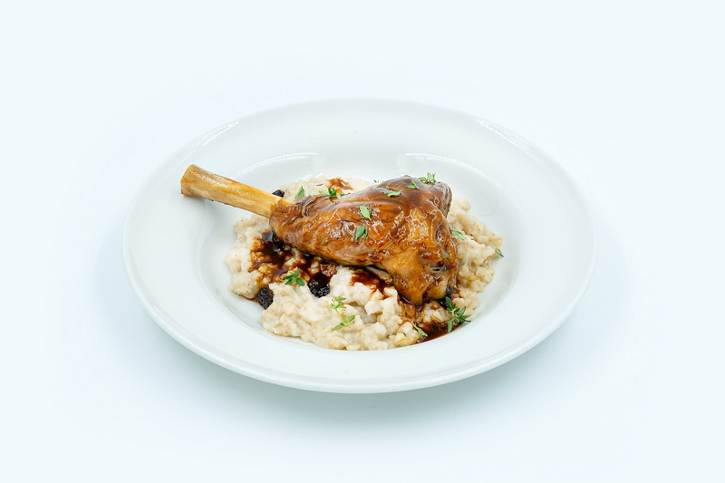 Pekmezde marine edilmiş kuzu incik , yaban mersinli keşkek , kekikli demi glace sos