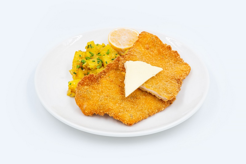Tereyağında kızarmış paneli tavuk göğsü , hardallı ılık patates salatası