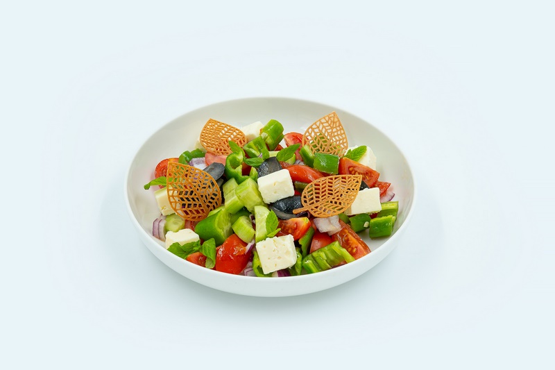 Domates, salatalık, kırmızı soğan , sivri biber , kalamata zeytin , taze nane , ezine beyaz peynir , zeytinyağı limon sos