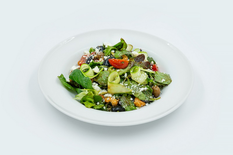Bahçe yeşillikleri , kaju fıstığı , kalamata zeytin , erzincan tulum peyniri , çengelköy salatalık , çeri domates , Antakya zeytini , nar ekşili sos