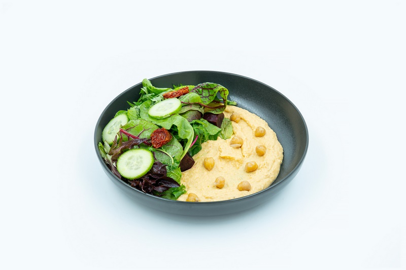 Geleneksel Humus , bahçe yeşillikleri , kurutulmuş çeri domates , salatalık , pancar , semizotu