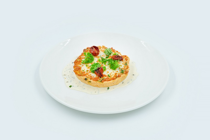 Mevsimine göre karışık otlar ile hazırlanmış kiş , mozarella , kremalı tarhun sos