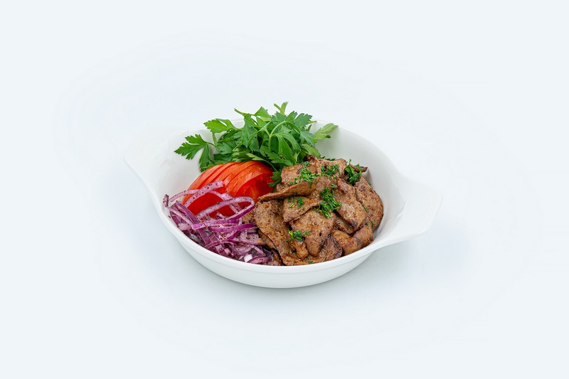 Tereyağında pişirilmiş kuzu ciğeri , dereotu , maydanoz , sumaklı kuru soğan , domates dilimleri