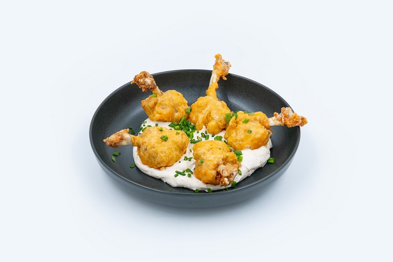 Tempura tavuk kanatları , acılı taze peynir dip sosu