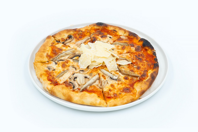Pizza sosu , mozarella , istiridye mantarı , kültür mantarı , sızma zeytinyağı , parmesan