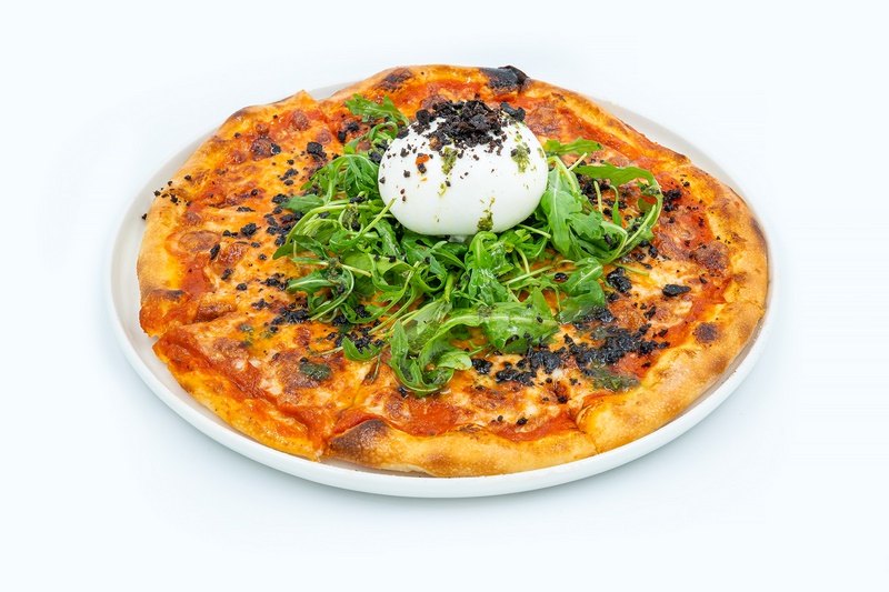 Pizza Sosu ,burrata , arugula , pesto sosu , zeytin kurusu